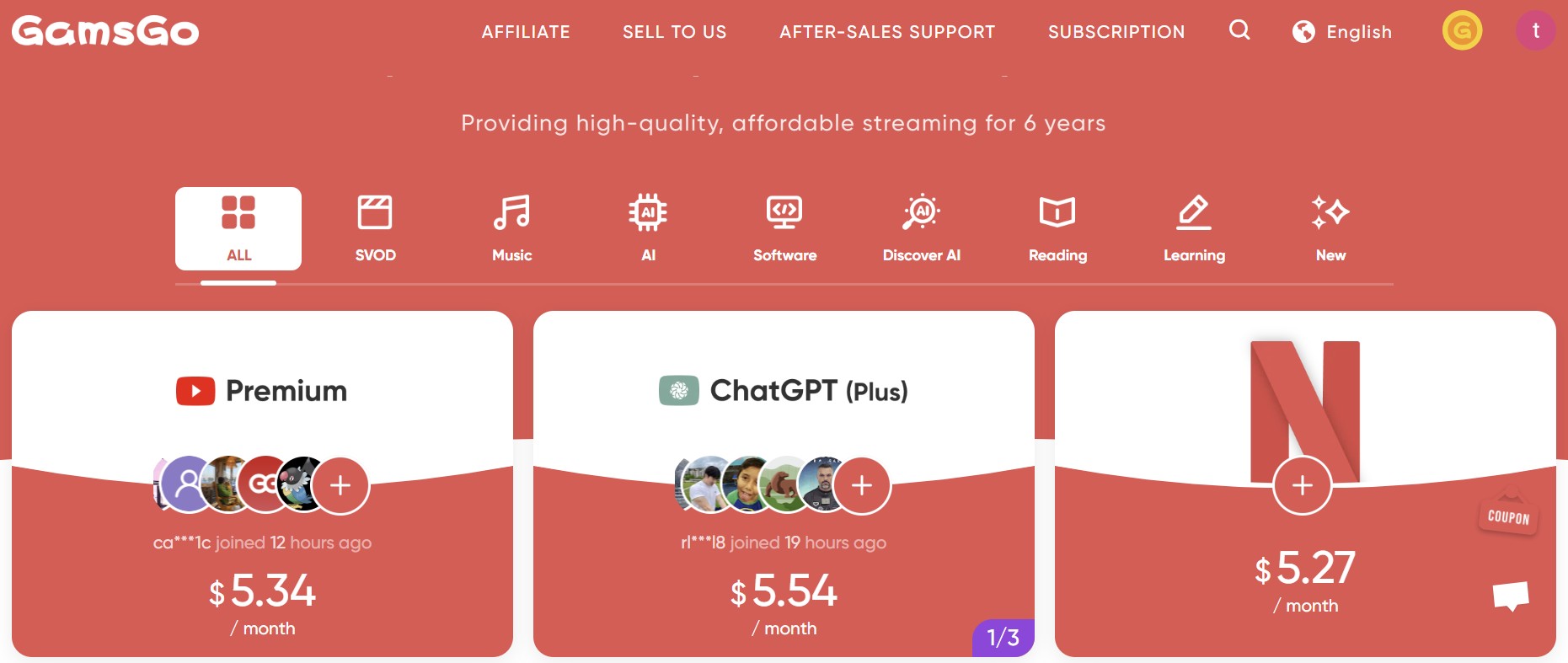 겜스고는 해외 가족 요금제를 기반으로 OTT 구독 서비스를 저렴하게 제공하는 플랫폼입니다. 사용자는 ‘프로필 공유’ 방식을 통해 유튜브 프리미엄, 넷플릭스, 디즈니플러스 등을 훨씬 저렴하게 이용할 수 있습니다. 복잡한 VPN 설정 없이도 사용할 수 있어 처음 이용하는 분들에게도 안성맞춤입니다.