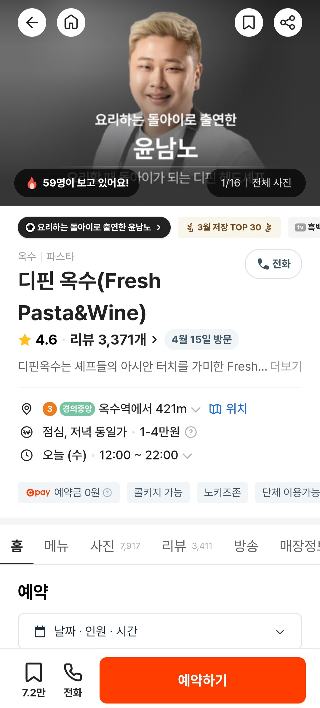 여기서 중요한 포인트 하나! 디핀옥수는 전화 예약이 불가능하고 반드시 캐치테이블 앱을 통해서만 예약이 가능합니다. 인기 있는 시간대는 오픈 즉시 마감되니 서둘러야 해요.